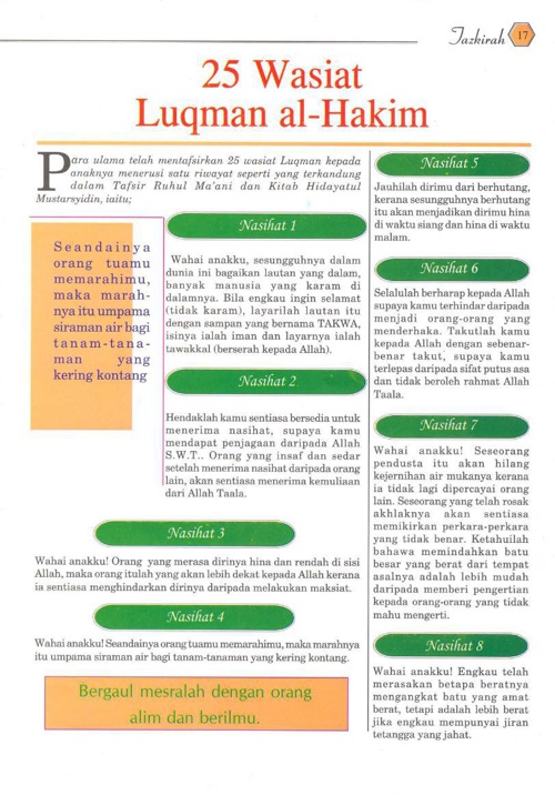 Dauroh ambon 10 syaban 1438 h-070517. 10 wasiat luqman al hakim dalam alquran Luqman al Hakim bukanlah seorang nabi mahupun seorang raja tetapi beliau hanyalah seorang pengembala ternakan yang berkulit hitam. Sie enthält zahlreiche kurze informative Artikel über verschiedene.